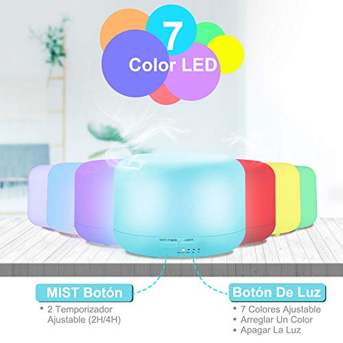 Tenswall Humidificador Ultrasónico,400ml Difusor de Aromaterapia,7-Color LED,4 Temporizador,2 Opciones de Niebla Difusor...