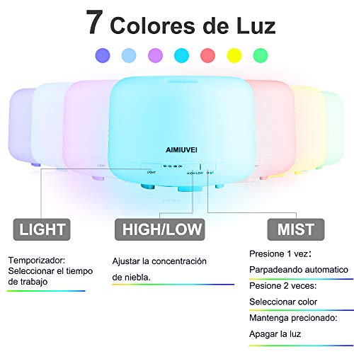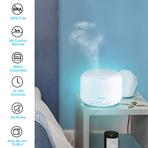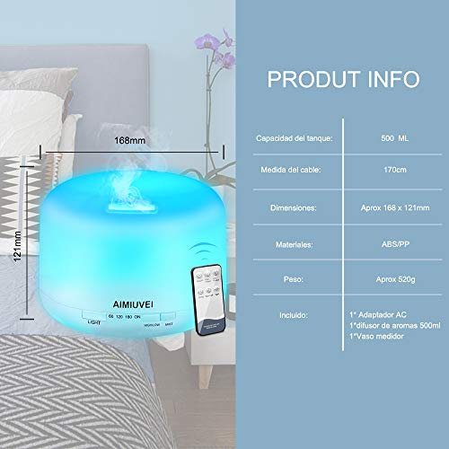 AIMIUVEI 500ml Humidificador Aromaterapia Ultrasonico con Mando a Distancia, Difusor de Aceites...