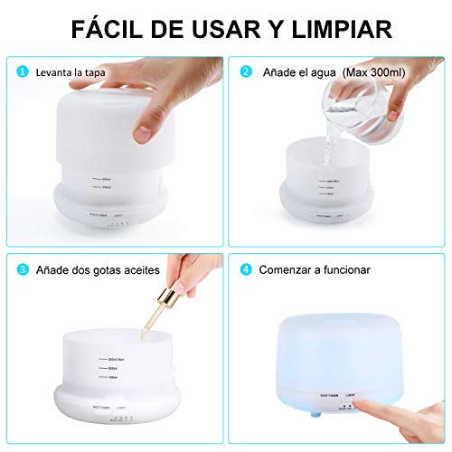 VicTsing 300ml Difusor de Aceites Esenciales, Difusor Aromaterapia de 7-Color LED, Función...