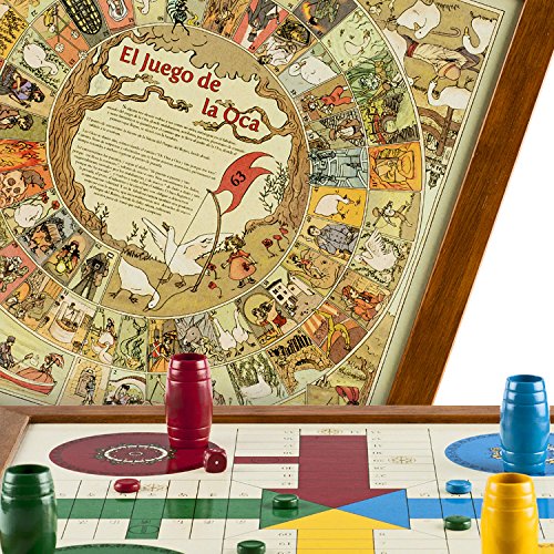 - Contenido: juego de la oca, parchís, la escalera, las damas, los gatos y el ratón, solitario, damas chinas y juego de personajes.