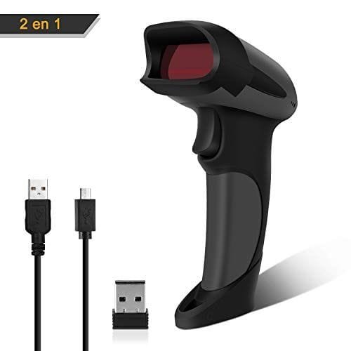 - Inalámbrico y Portátil:Lector de código de barras con receptor inalámbrico además de un cable USB,es muy a usar en diversos lugares;Con distancia de transmisión de 50-100m en espacios interiores,y de hasta 400m sin obstáculos