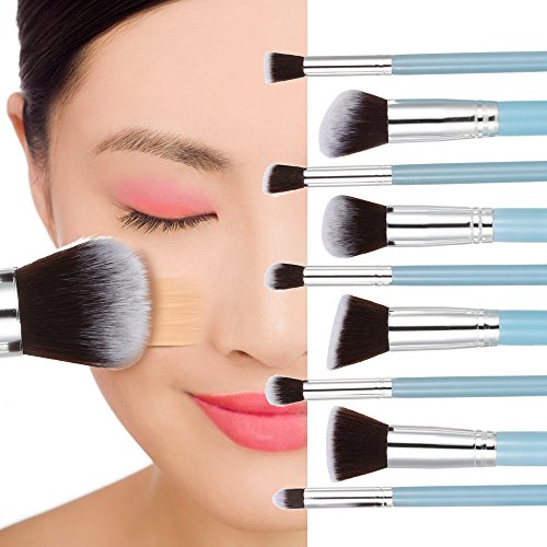 - [Elegante Diseño y Color azul]: El elegante equipo de brochas es perfecto para los artistas profesionales, así como los amantes y los principiantes del maquillaje