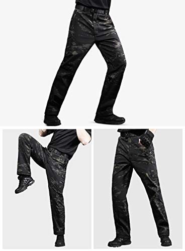 YuanDian Hombre Tactico Camuflaje Softshell Pantalon Forro Polar Militar Multi-Bolsillo Trekking Pantalon...