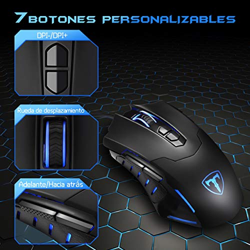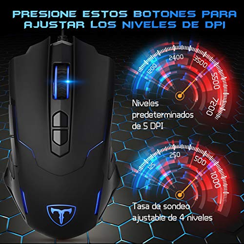 PICTEK - Ratón para Gaming con 7 Botones programable, con Cable de...