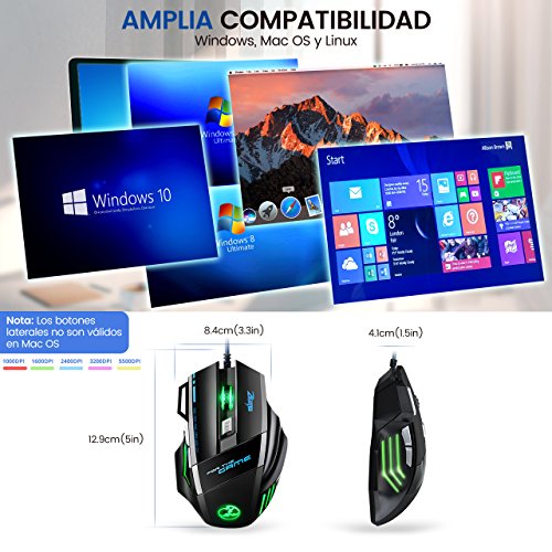 [Versión Actualizada] TOPELEK Ratón Gaming con Cable Profesional USB 5500 DPI con...