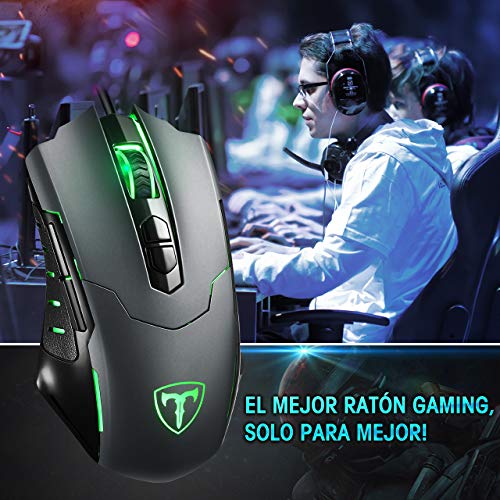 PICTEK - Ratón Gaming Programable con Retroiluminado Personalizable Compatible con Windows7/8/10/Xp/Vista, Negro