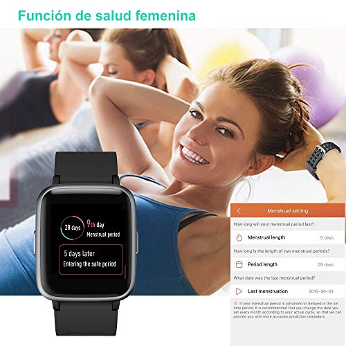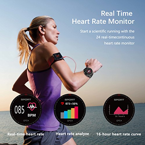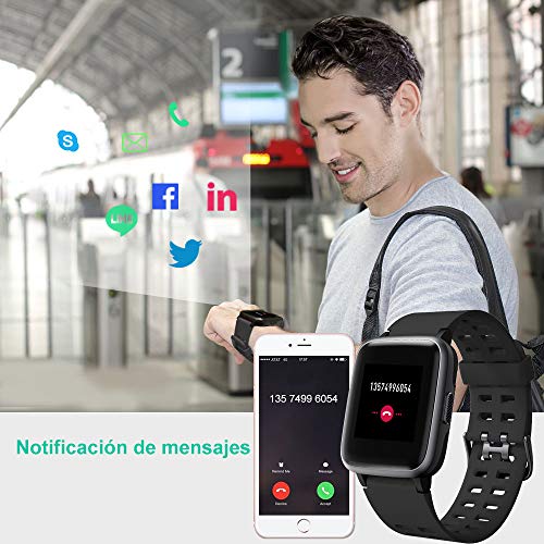 - 【Smartwatch multifunción] Monitor cardiaco, monitor de sueño, podómetro, distancia, calorías quemadas, control de la música, anti pérdida, seguimiento GPS y 14 modos deportivos (caminar, correr, ciclismo, yoga, escalada, baloncesto, bádminton, fútbol, senderismo, cinta e correr, fitness, danza, tenis y fútbol americano), mensajes y notificación de llamadas (WhatsApp, Messenger, Facebook , Skype, Twitter, LinkedIn, …).