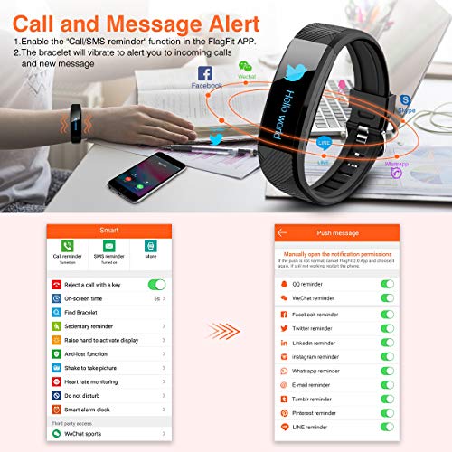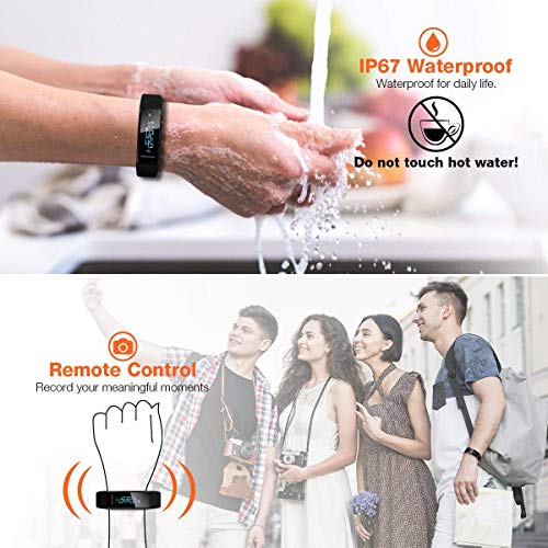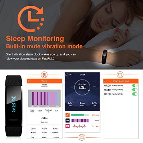 - 【Pantalla OLED & IP67 a prueba de agua】 La pulsera Fitness equipa la pantalla HD OLED con 0.87 pulgadas. La semana, el día y la hora se pueden ver claramente en la pantalla principal. Con el nivel de impermeabilidad IP67, se puede usar directamente en entornos normales de sudor y vapor. El Fitness Tracker requiere una aplicación "Flagfit2.0". Escanee el código QR que encontrará en el manual para descargar la aplicación. No recomendaríamos llevar este reloj al ducharse o nadar.