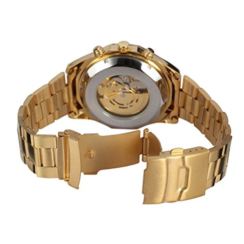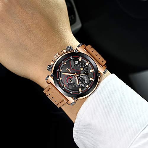 - ⌚Material: Diseño único y elegante: todos los diales y botones pequeños funcionan, caja IP chapada en oro, nunca se desvanecen; Correa de cuero suave y transpirable para una experiencia de uso cómoda, es el regalo perfecto para su familia y amigos.