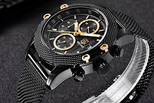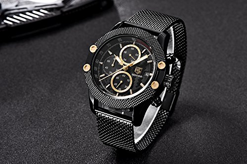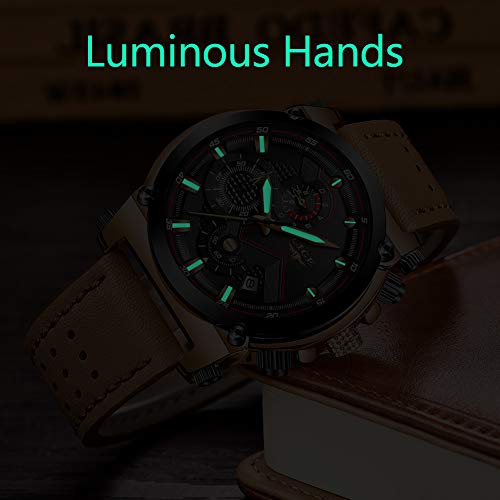 - ⌚Diseño versátil: Reloj de hombre con todos los diales pequeños Trabajo normal, cronógrafo, segunda mano, calendario, manecillas iluminadas (Absorber la luz suficiente para brillar en la oscuridad).