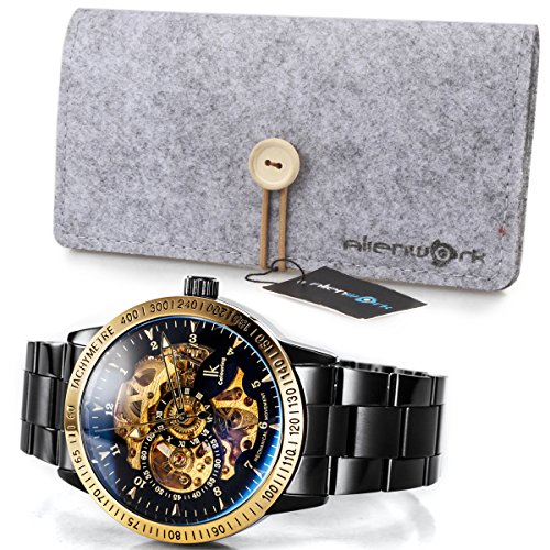 Alienwork IK Reloj Mecánico Automático Relojes Automáticos Hombre Mujer Acero Inoxidable Negro...