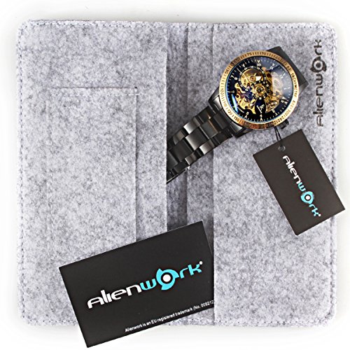 - Los relojes para hombre de Alienwork son impermeables a 1 ATM. Adecuado en la ducha, contra el sudor o bajo la lluvia. Se entrega en una elegante bolsa de fieltro