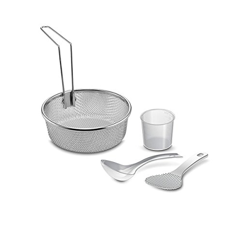 - Accesorios; cuenta con vaporera para la cocción al vapor, cestillo colador, espátula, paleta mezcladora y vaso dosificador