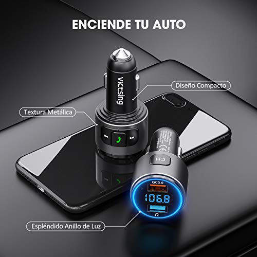 ![Transmisor FM Bluetooth V5.0, [RGB 7 Colores Luz de Anillo] VicTsing Manos Libres para Coche QC3.0 Carga rápida, Reproductor MP3 Coche, Adaptador de Radio Dual USB QC3.0 & 5V1A, Tarjetas SD + U Disk](https://m.media-amazon.com/images/I/51Q7CNL3rGL.jpg)