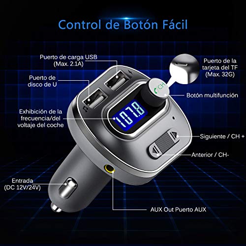 ![Cocoda Transmisor FM Bluetooth, [Luz de Anillo Azul] Manos Libres para Coche, Inalámbrico Reproductor MP3 Mechero Coche Adaptador Receptor con Dual USB 5V/2.4A & 1A, Soporte Tarjetas SD + U Disk](https://m.media-amazon.com/images/I/41a-iD2et4L._SS520_.jpg)