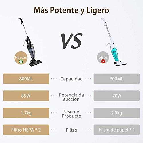 - 【Aspiradora 2 en 1】Esta aspiradora vertical con una filtración de tres etapas y puede evitar el agua y el polvo entren en el motor paso a paso.Las aspiradoras verticales y las aspiradoras portátiles se pueden convertir libremente.Los cepillos y boquillas se pueden montar fácilmente,limpia eficazmente todos los rincones de su hogar.
