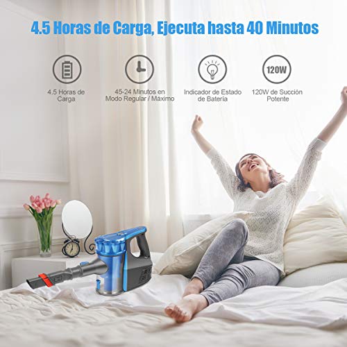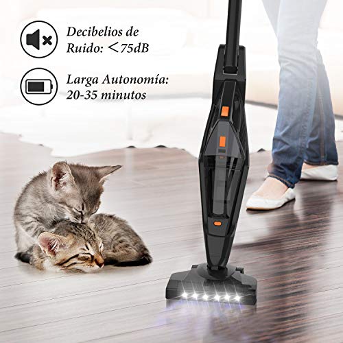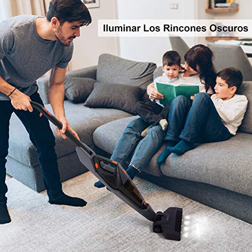 - 【Aspiradoras Vertical Sin Cable】Estas aspiradoras vertical sin cable trae un acople pequeño lo que la convierte en aspiradora de mano para limpiar por rincones,coche.También tiene 4 luces LED para iluminar lugares oscuros,no pierde ni un polvo y ✊dos modos de velocidad