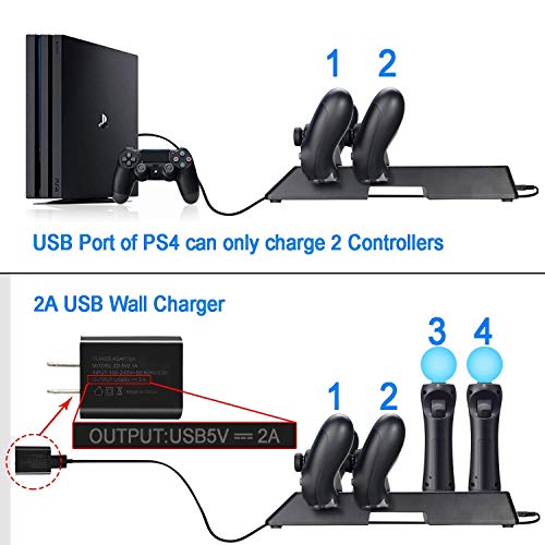 - 【Carga 4 en 1】 Cargue dos controles para PS4 y dos PS VR / Move Controllers simultáneamente. No es necesario esperar más para cargar 2 controladores.