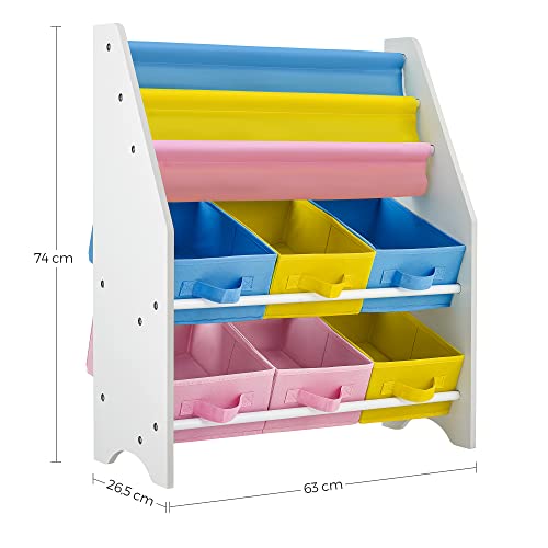 SONGMICS Estantería para Juguetes Organizador de Juguetes Estantería Infantil con Cajas de Colores Cajas de Tela no Tejida para Guardar Libros y Juguetes 63 x 74 x 26,5 cm GKR36WT
