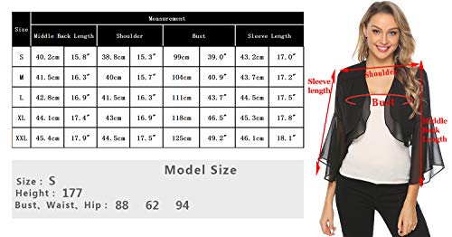 Aibrou Mujer Ruffle Manga Chiffon Bolero Shrug Frente Abrir Bolero Cardigan Camiseta...