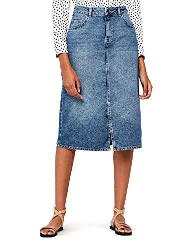 find. Denim Midi_AMZ639 Falda, Blau (Moseley Road/Chantuque Stone Wash), 40 (Talla del Fabricante: Medium)