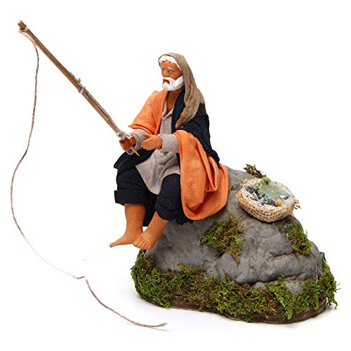 Holyart Pescador sobre Roca 12 cm con Movimiento bel?n napolitano