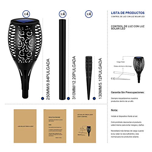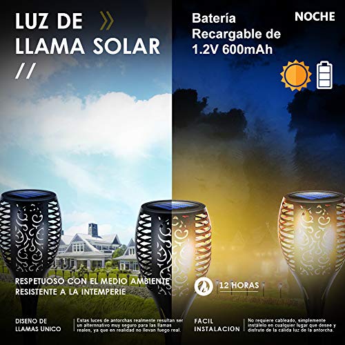 - 【Fácil instalación y Resistencia a la Intemperie Ip65】No se requiere cableado, simplemente instálelo en el lugar que desee y disfrute de la luz de la antorcha caliente. IP65 impermeable y resistente al polvo para soportar todo tipo de clima durante todo el año.