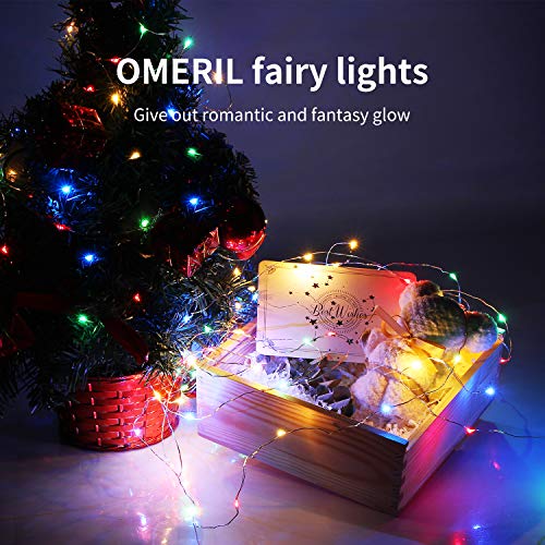 Guirnalda Luces Pilas, OMERIL Luces Navidad Colores 12M 120LED [2 Pack], Luces...