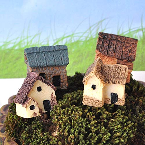 Mengonee 4pcs Kit Miniatura Hada del jardín de Piedra Casas Mini Cottage...