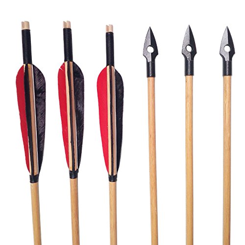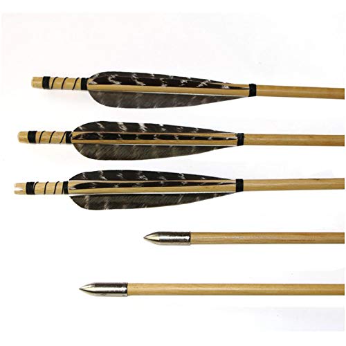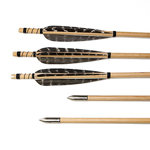 - El paquete incluye: 12pcs eje de la flecha de madera con plumas de pavo