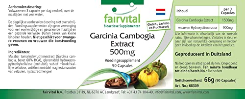 - ✔ CALIDAD ALEMANA Fairvital: 3 cápsulas al día contienen 1500mg Garcinia Cambogia, de los cuales el ácido 900mg hidroxicítrico ¡Alta dosificación! Excelente relación calidad-precio! Estandarizado para 60% HCA