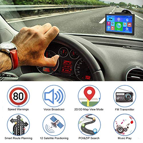 FLOUREON 7 Pulgadas GPS Navegación de Coches, Pantalla Táctil LCD Capacitiva de Navegador de Camión y Coche con Actualizaciones de Mapas de por Vida- Azul