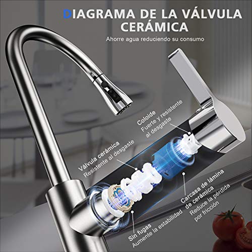 Grifo de Cocina, DALMO DAKF3F, Grifo Cocina extraible con Caño giratorio de...