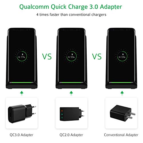 Holife Cargador Inalámbrico Rapido, Cargador Inalámbrico con QC 3.0 Adaptador Rápido para Galaxy S9/S9+/S8/S8 Plus/S7/S7 Edge/Note 8/S6 Edge+, 5W para iPhone XS/XS MAX/XR/X/8/8S
