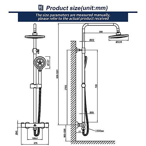 - 【Ajuste Flexible】La barra de ducha se puede girar 360° libremente y modificar la altura(hasta1.2M). Para Conjunto de Ducha, la altura de instalación recomendada entre el termostato de ducha y el suelo es: 90-110 cm. : Si hay una bañera en casa, considere la altura de la barra de la ducha para evitar que sea demasiado corta para usar. Además, no hay un tubo de extensión adicional para este cabezal de ducha. Confirme si la altura es adecuada antes de comprar.
