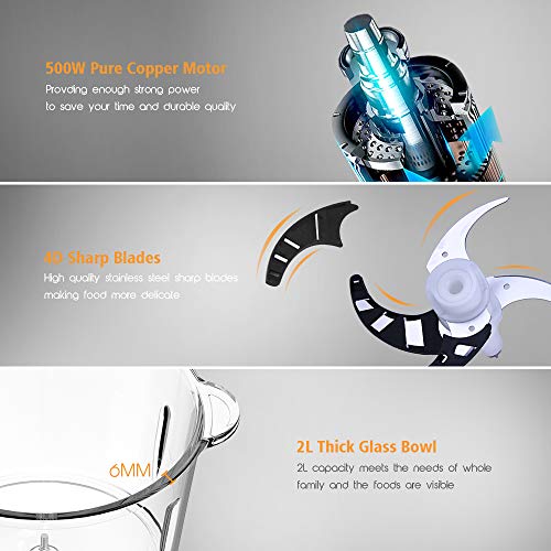 homgeek Picadora de Acero Inoxidable, Trituradora de Alimentos de 500 vatios, Modo...