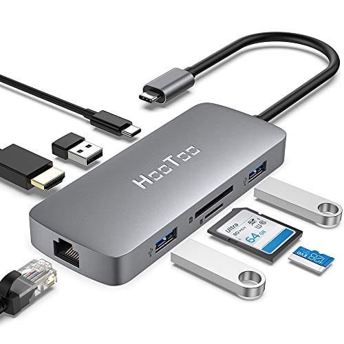 HooToo HUB USB C (8 en 1) Versión 2019 Adaptador USB C 3.1 Carga 100W, Ethernet Rj45, HDMI, 3 Puertos USB, Lector SD/TF, Concentrador Compatible con MacBook/Pro/Google ChromeBook Pixel/Huawei/Samsung