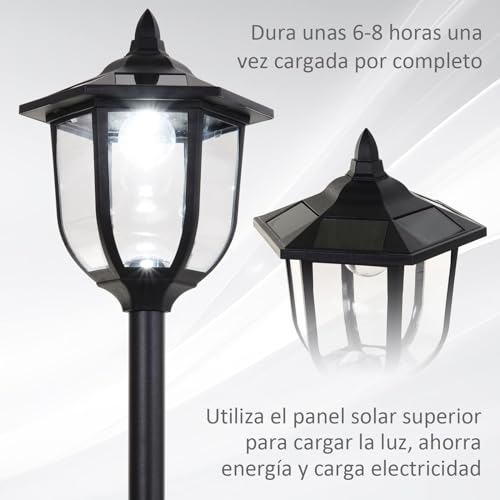 Outsunny Lámpara de Pie Exteriores con Panel Solar a Cargar Batería Protección...