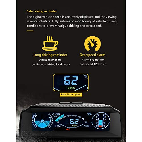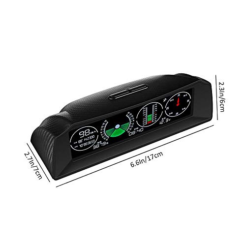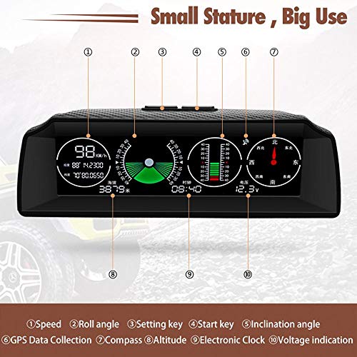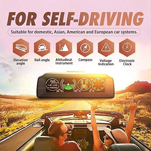 - Conducción de seguridad: un velocímetro inteligente multifuncional HUD GPS para la conducción, soporta totalmente el control de alta precisión de la velocidad del coche, ángulo de inclinación del vehículo, cambios de ángulo de inclinación del vehículo, brújula, tiempo y voltaje de la batería del coche, para garantizar su seguridad en la conducción.