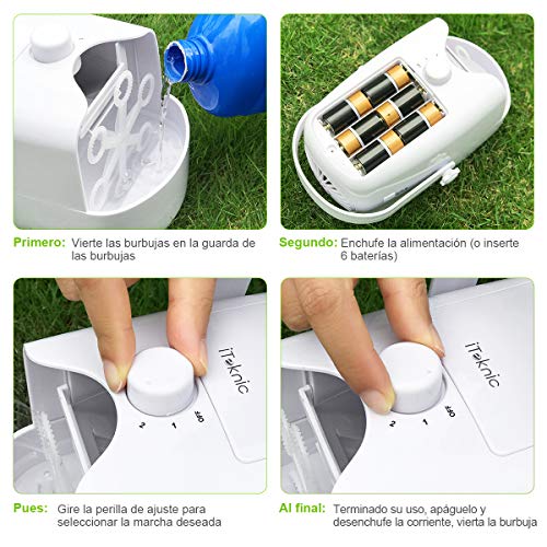 1 iTeknic Maquina de Burbuja Portátil Mecanismo de soplado automático con batería/Adaptador de Corriente