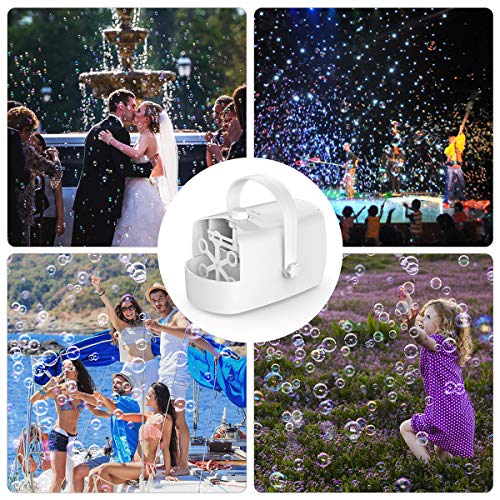 - [PERFECTO PARA TODAS LAS OCASIONES]: Forma elegante y noble blanca con la asa flexible y desmontable, el aparato puede producir grandes cantidades de burbujas en cualquier lugar, perfecto para sus festivales y fiestas de cumpleaños, escenarios, bodas, barbacoas, bolas, etc.