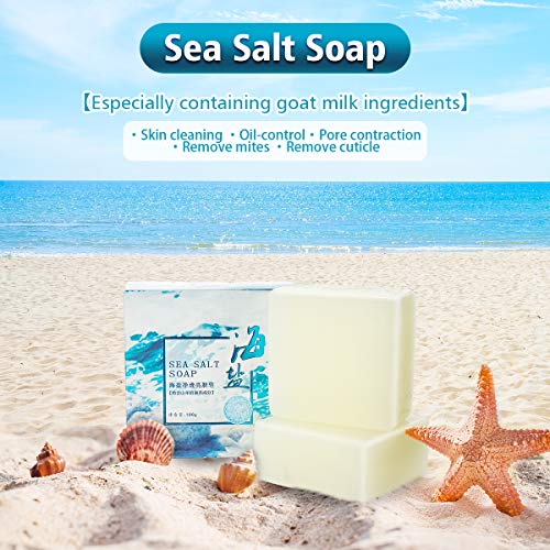 Charminer Jabón de sal marina Cuidado de la piel Jabón hecho a mano Leche de cabra Limpiador facial Reparación de espinillas Eliminación de poros Tratamiento del acné Hidratante 1 pc