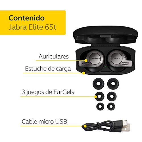 Jabra Elite 65t - Auriculares inalámbricos (Bluetooth 5.0, True Wireless) con Alexa integrada, Negro y Titanio