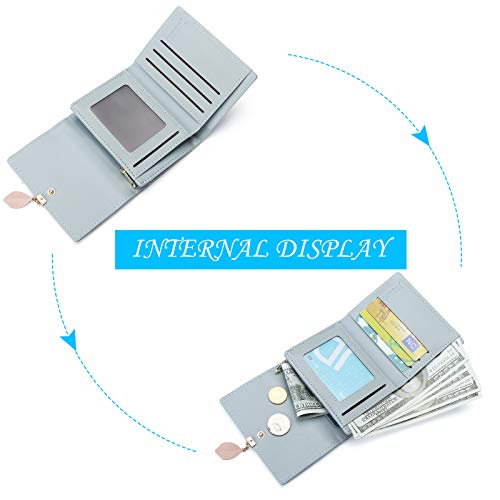 JOSEKO Billetera Corta con Volantes para Mujer, Billetera de Cuero PU, Billetera pequeña con Ranura para Tarjeta, Billetera Femenina Elegante#Neblina Azul