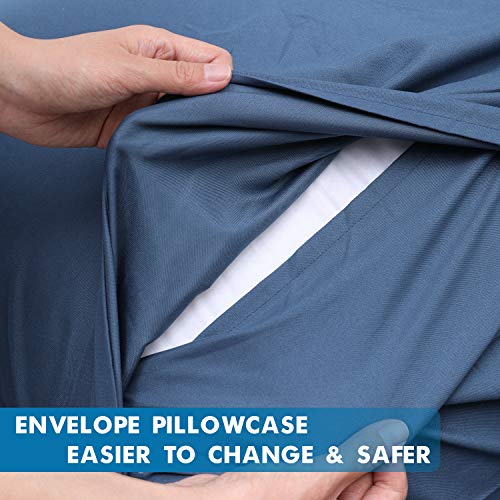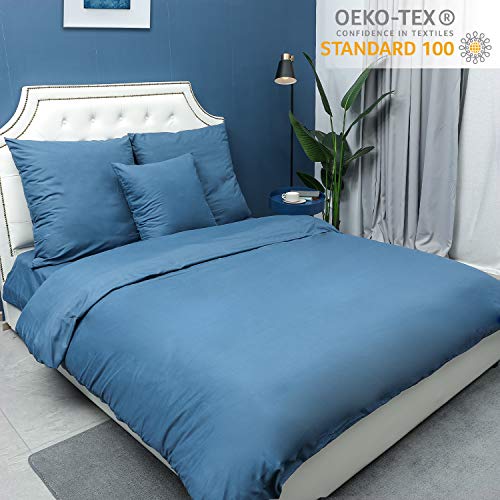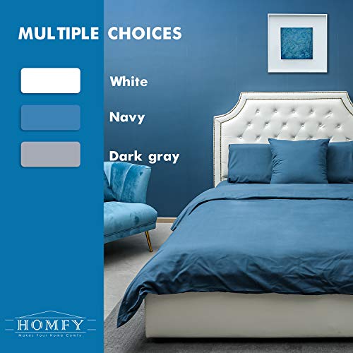 Homfy – Juego de funda de edredón 100% de algodón lavado, con fundas de almohada, hipoalergénico y ultrasuave, aspecto arrugado natural, algodón, azul marino, Double (200x200cm+2x75x50cm)