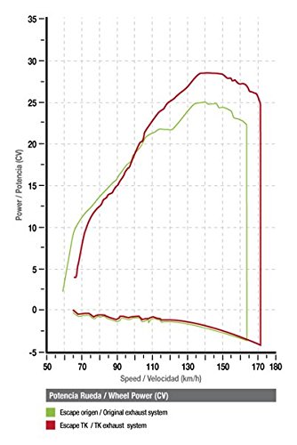 - Aumenta la potencia de 4-5 % de rendimiento con escape original.
