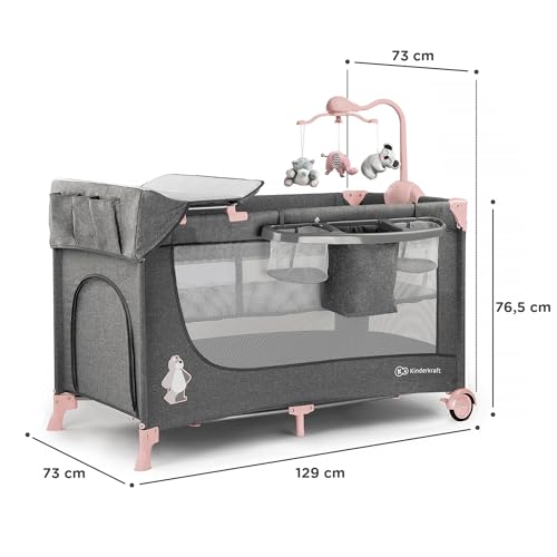 1 Kinderkraft Cuna de Viaje JOY, Parque Infantil, Plegable, Hasta 15 kg, Rosa