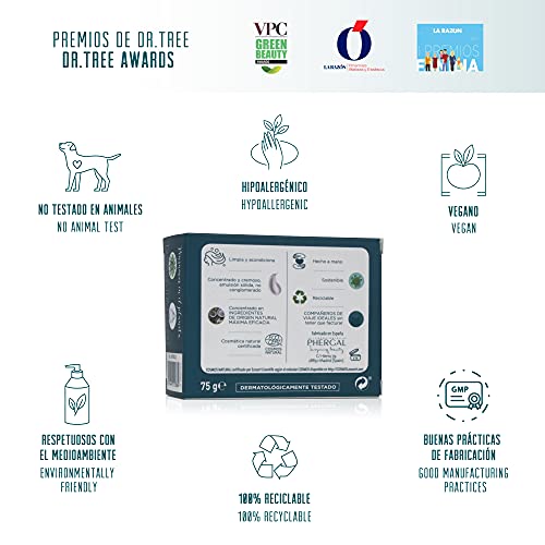 - 99,7% de Ingredientes de origen Natural. Dr. Tree ESTÁ COMPROMETIDO CON LA APUESTA por la SOSTENIBILIDAD y dar SOLUCIONES para esta tendencia con productos de VALOR DERMATOLÓGICO y fórmulas de CHAMPÚS SÓLIDOS CON CERTIFICACIÓN COSMOS NATURAL