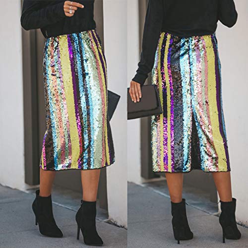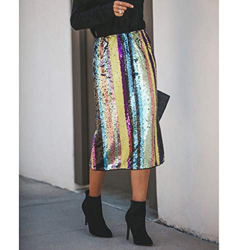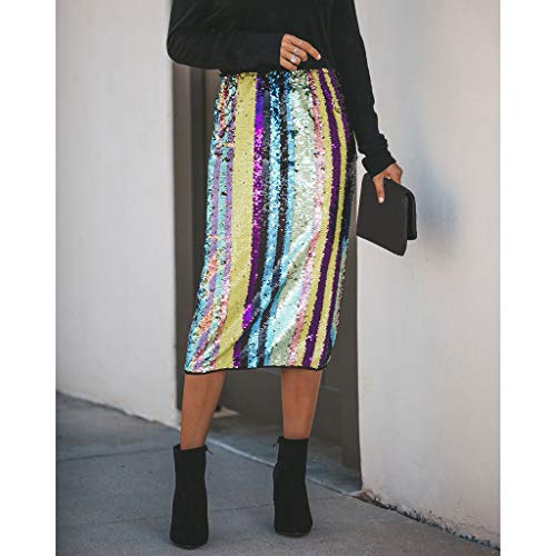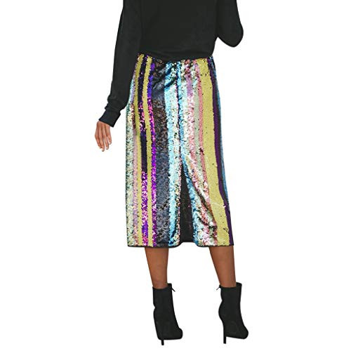 Lenfesh_Vestidos Falda para Mujer,Lenfesh Mujer Falda Fiesta con Lentejuelas de Cintura Alta...