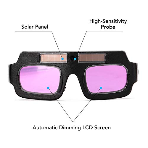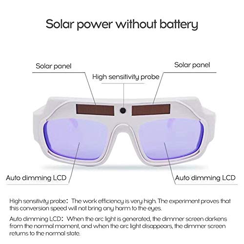 - Gafas de soldadura profesionales: Estas gafas de soldar de oscurecimiento automático solar están hechas de material PC + ABS de alta calidad, resistentes y duraderas de usar; Diseñado con caucho suave importado, muy cómodo de llevar durante mucho tiempo; También cuenta con anti-ultravioleta, radiación infrarroja, antirreflejo, que puede proteger sus ojos durante los trabajos.
